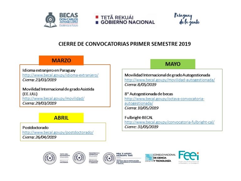 19/03/2019 En el primer semestre del 2019 BECAL ha abierto seis convocatorias,